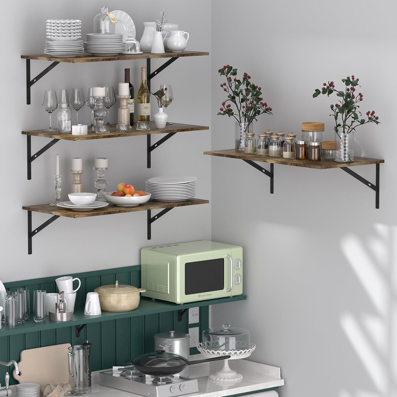 Deep Floating Shelves for Wall Set of 3, 24W x 12 Inch Deep Floating Shelves, Wide Floating Wall Mounted Shelves for Living Room, Kitchen, Office, Bedroom, Bathroom, Laundry Room