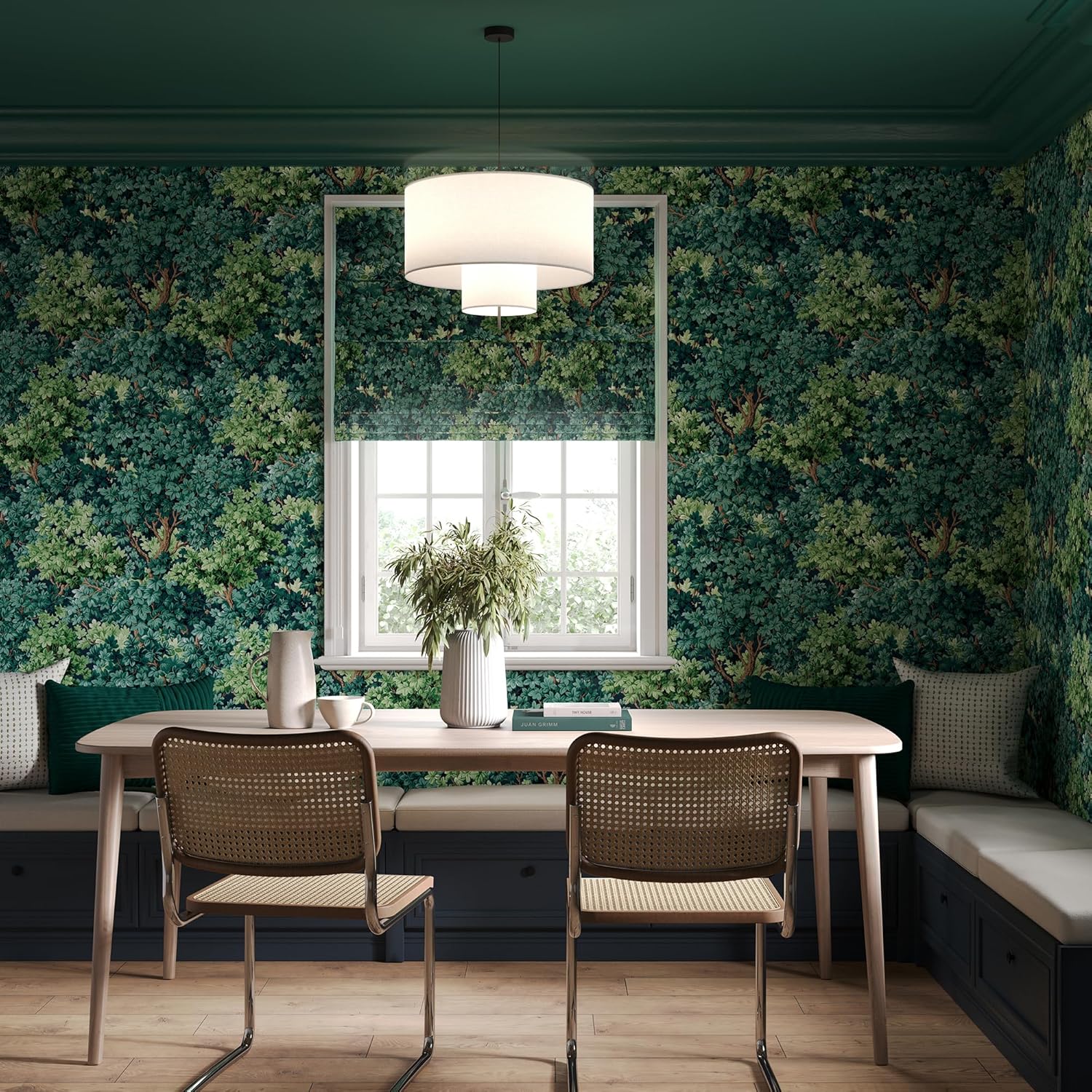 Add a touch of botanical style to your interiors with our Coppice Forest feature wallpaper. Embracing the spirit of the great outdoors, Coppice Forest offers a symphony of brilliant greens. The depth and complexity of this design make it the perfect candidate for a unique forest feature wall. Complement the statement look with wooden furnishings and neutral options of our paint or wallpaper to play into the trees within the design.FEATURES: -Paste the Wall Application-Match Type:Offset match with a 12.59 inch pattern repeat-Strippable-Spongeable-Matte finish-Smooth finish-Dimensions: Each full roll measures 396 x 20.5 x 0.01 inches, 56 square feet