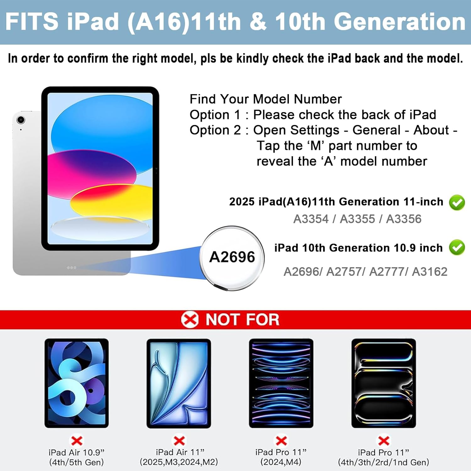 | Compatible Devices | 202025 iPad (A16) 11th generation 11-inch - Model: A3355,A3356, iPad 10.9 inch 10th generation 2022 - A2696/A2757/A2777 |