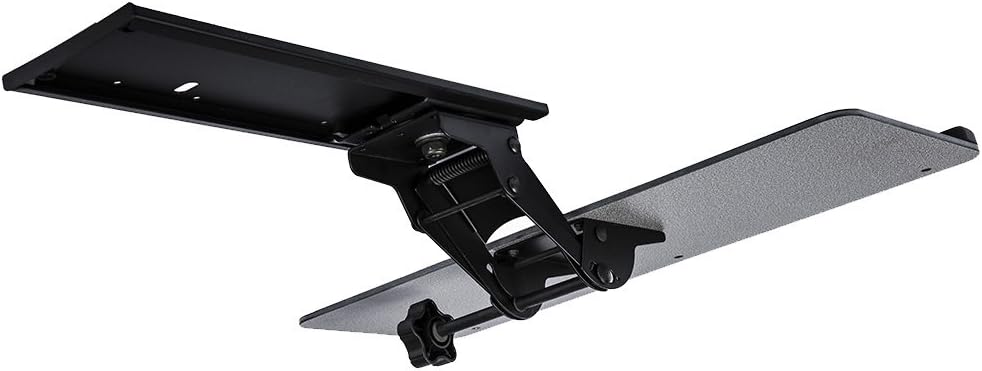 Note: This item is not available for SHIPPING TO AK, HI, and PR. OR APO.FPO.DPO. Many of us may need to sit down all day to work in front of the computer. A height adjustable keyboard tray will keep you comfortably typing in the different posture you like. Keeping the posture comfortable at work would help setting free of mind, being energetic and productive. Introducing the brand new under mount height adjustable keyboard tray. Height adjustable keyboard tray Integrated wrist rest pad and mouse pad. Easy installation. All parts needed for installation are included in the package. Undermount with drawer, can be hidden in under the table Steel material frame to ensure the stability. Black and grey color sophisticated for different desk. And will look new after years of usage. Ideal accessories for sit / stand desk or height adjustable desk. Size: 25 inches width x 10 inches depth With steel material of up to 12 lbs, we are much stronger than similar products in the market.