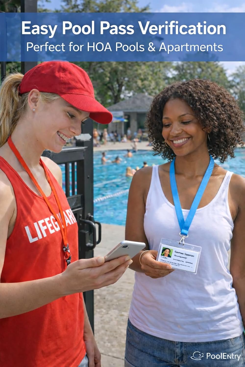 The PoolEntry Waterproof Pool Pass Holder with Lanyard is designed for swimming pools, apartment complexes, HOA communities, swim clubs, and recreational facilities that require reliable identification and access control. This durable badge holder keeps pool passes, ID cards, and access credentials protected from water, sun exposure, and everyday wear. Made from clear waterproof vinyl, the holder keeps cards visible while protecting them from moisture and damage. The included lanyard allows residents, lifeguards, staff, or guests to wear their passes comfortably during pool activities or facility access. Ideal for community pools, apartment complexes, property managers, and events, the PoolEntry badge holder helps streamline identification and access management. Whether used for residents, staff members, lifeguards, or visitor passes, it provides a professional and reliable way to display credentials while keeping passes secure.