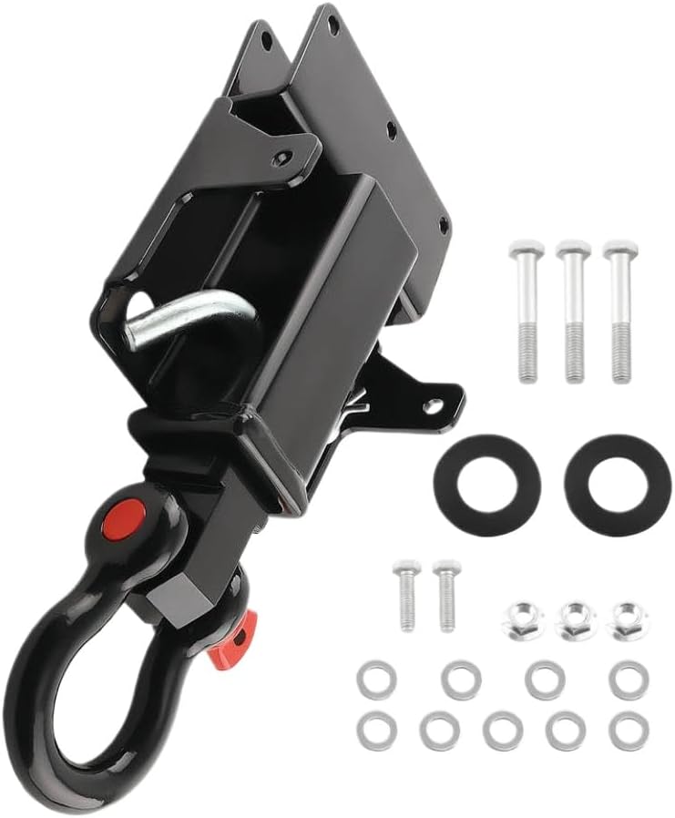 Shackle Hitch Receiver + 2'' Rear Hitch Mount Fit for Mule 610 600 SX Trailer Receiver Hitch made from 3/16 inch and 1/4 inch steel with black powder coating.No drilling or vehicle modification required for installation.This mount bracket kit allows the installation of 2 inch square receivers and winch mounts.Includes mounting bracket plate and hardware only.Hitch and hitch ball are not included.Shackle Hitch Receiver installs directly into the receiver of your vehicle to provide increased leverage and pulling power.Compatible with all standard 2 inch hitch receivers.Includes a 7/8 inch locking pin and a 3/4 inch D ring shackle.The black powder coat finish improves corrosion resistance, extends service life, and maintains appearance over time.Installation is bolt-on, requires no modifications, and takes approximately 20 minutes.