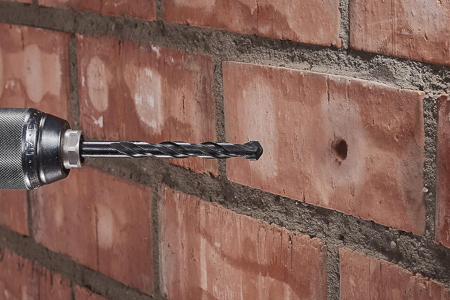 This universal drill bit is tungsten carbide tipped and ideal for drilling into wood, stone, metal and plastic. A diamond-ground hard metal plate and the 130° tip angle enable high drilling performance in hard materials. With the SDS-Plus shank, the drill is suitable for exclusively rotary use with appropriate cordless hammer drills. It is available in different sizes and is compliant with DIN 5468.